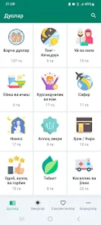 Aplikasi 'Зикр ва дуолар' adalah panduan audio yang didasarkan pada kitab Al-Azkar karya Imam Nawawi. Aplikasi ini mengumpulkan doa-doa yang diriwayatkan dari Nabi Muhammad dan para sahabatnya, memberikan pengguna akses mudah untuk mendengarkan dan menghafal doa-doa tersebut. Dengan antarmuka grafis yang modern dan nyaman, aplikasi ini juga dilengkapi dengan fitur pencarian untuk memudahkan navigasi.
